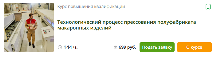 Совершенствование профессиональных компетенций слушателей в области прессования макаронных изделий