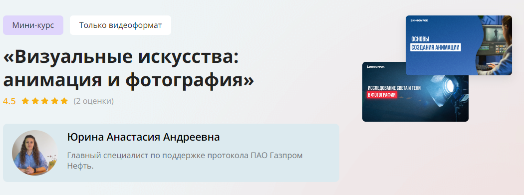 Пройдите обучение на курсе "Визуальные искусства: анимация и фотография" длительность 2 часа и получите сертификат.infourok.ru