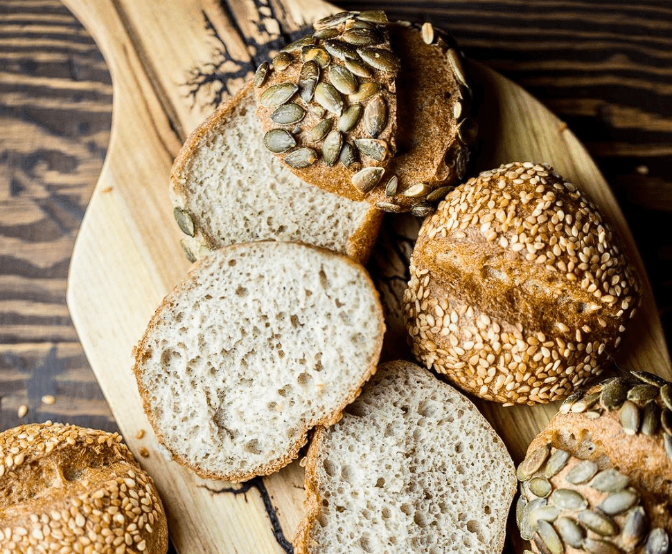 1. Гречишный «3 семечки» - зерновой хлеб на рисовой закваске из муки зеленой гречки с изобилием разных семян;