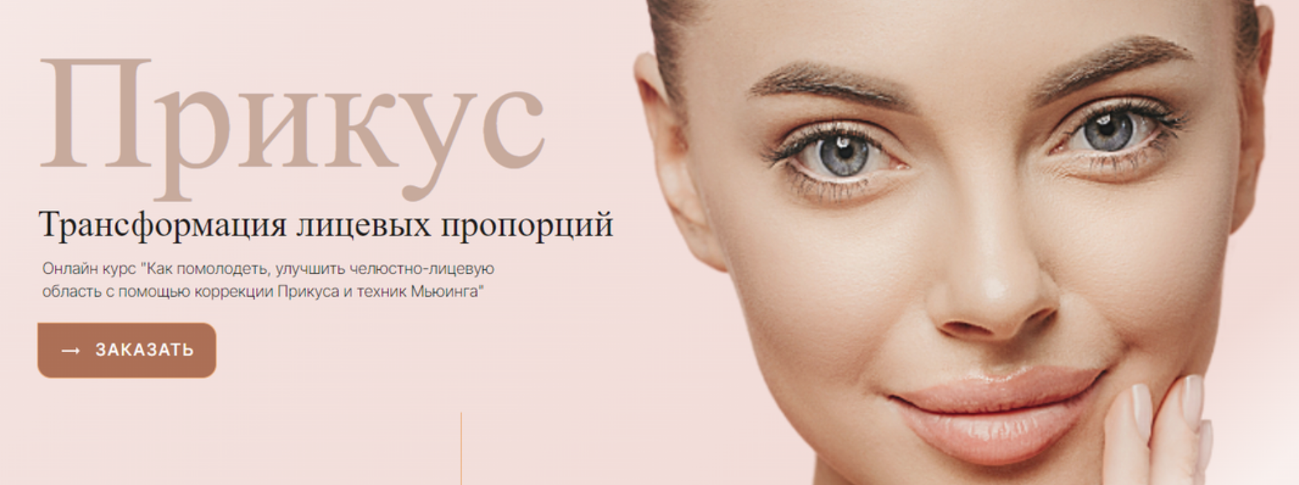 Онлайн курс "Как помолодеть, улучшить челюстно-лицевую область с помощью коррекции Прикуса и техник Мьюинга".