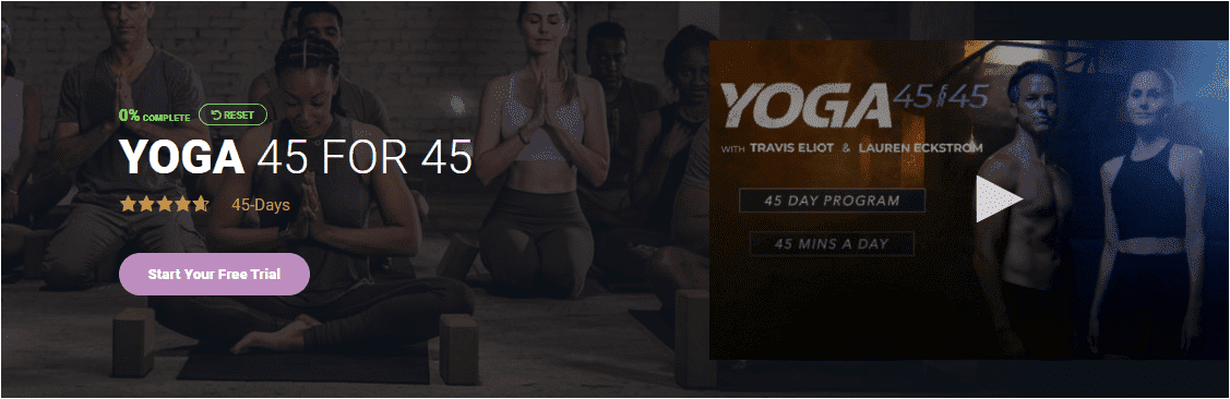 Yoga 45 for 45 — это программа, созданная Трэвисом Элиотом и Лорен Экстром, чтобы помочь вам углубить практику йоги и пробудить свой безграничный потенциал. Это продолжение их популярной программы Yoga 30 for 30. Эта новая программа состоит из 45-минутных занятий, состоящих из 16 тематических занятий силовой йогой, инь-йоги, восстановительной, нежной, а также специально разработанной последовательности движений.