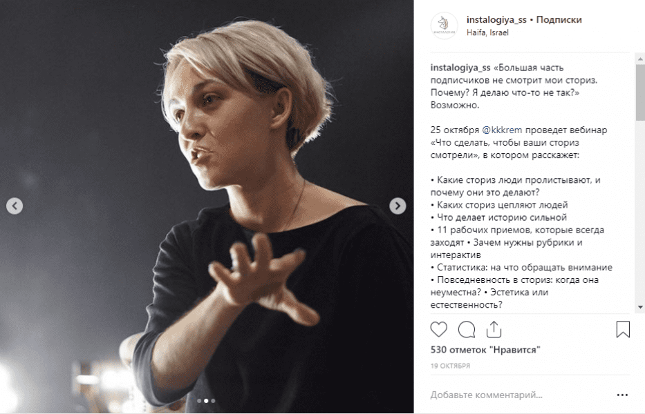 Сториз Ольги смотрит 40 – 50% её подписчиков. При том, что хорошим показателем в инстаграме считается 20-30%. Приходите на вебинар, чтобы узнать, как сделать ваши истории интересней.