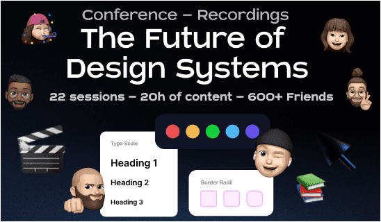 Online conference, 23-25 May 3-day Design Systems conference. Insights from experts LIVE, demos, Q&As & more.3 day virtual Design Systems LIVE conference, 20+ speakers, 3 workshops, 600 friends - 🎬 Recordings now availableA virtual Design Systems conference to bring together the community around...intodesignsystems.gumroad.com