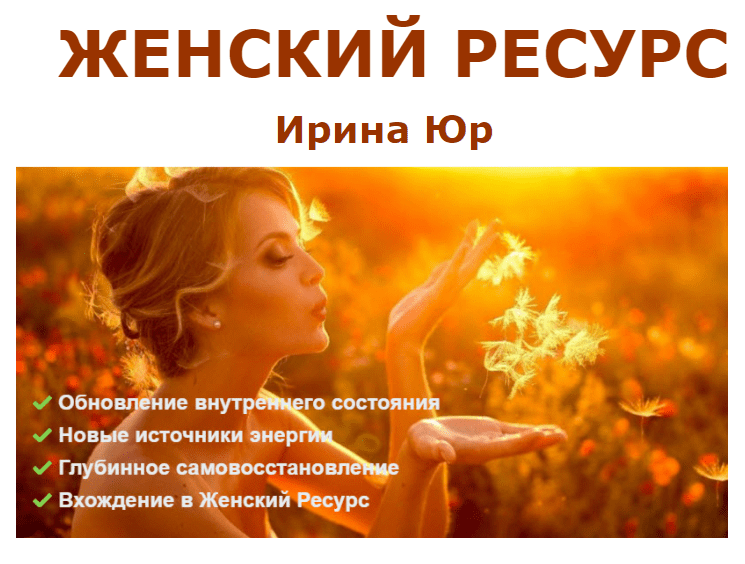 Немного внутренней работы - и Вы откроете в себе состояние безграничного Женского Ресурса,которого хватит не только Вам для своих целей, но и Вашим близким!