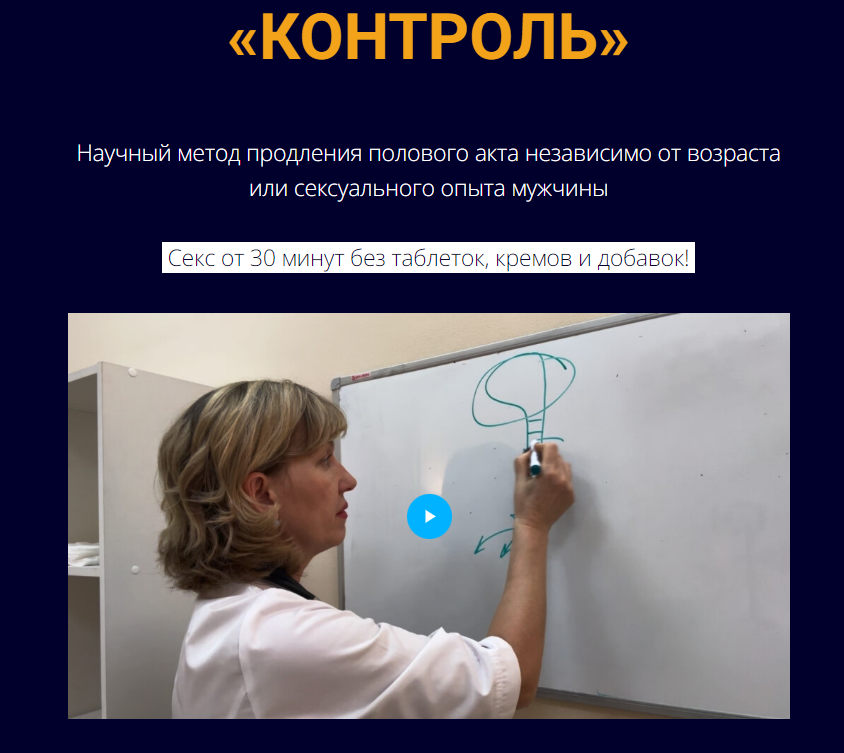 «Контроль» — это разработанный мною за 30 лет врачебной практики абсолютно естественный для мужского организма подход к прекращению преждевременной эякуляции, который позволяет вам легко контролировать наступление своего оргазма.
