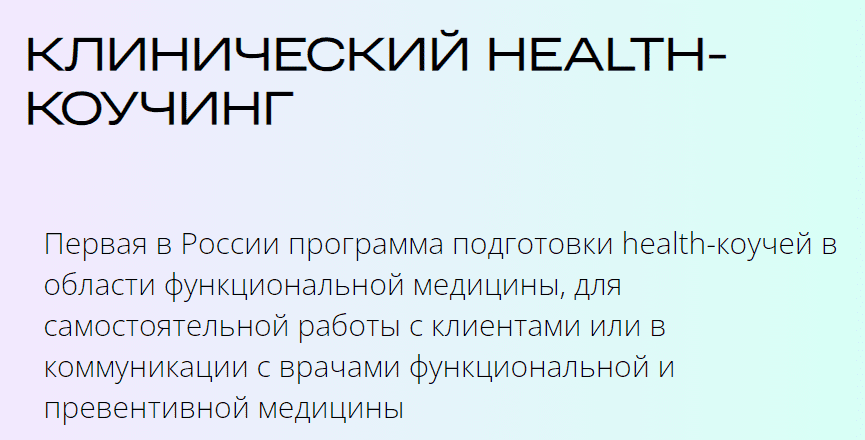 Первая в России программа подготовки health-коучей в области функциональной медицины, для самостоятельной работы с клиентами