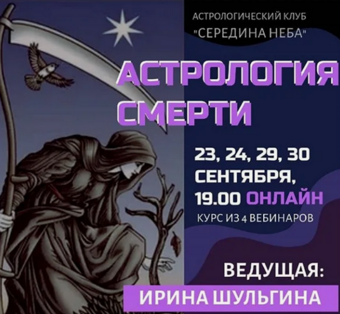С этими и другими актуальными вопросами предлагаем вам разобраться на вебинаре «Смертельная астрология».