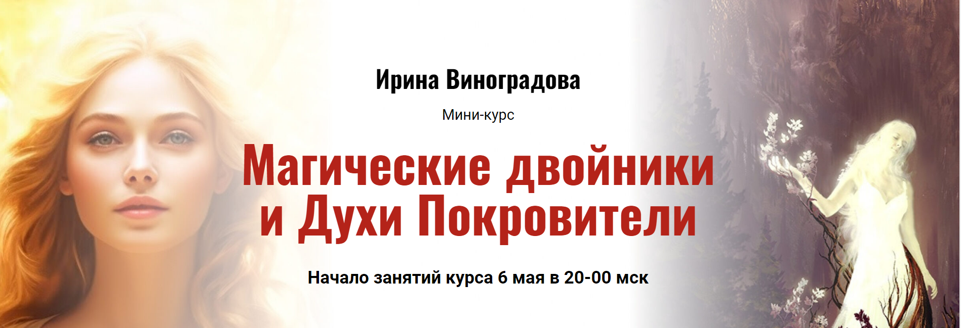 Ирина Виноградова приглашает вас на курс, на котором вы создадите своего Магического Двойника, познакомитесь с Магией Вольта и заручитесь поддержкой Духов-покровителей