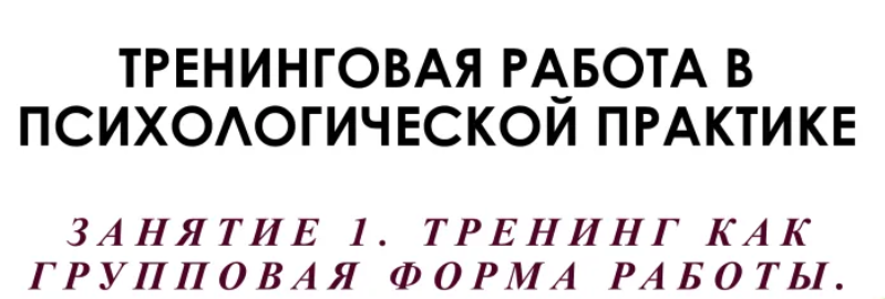 Тренинговая работа в психологической практике. Часть 1. Тренинг как групповая форма