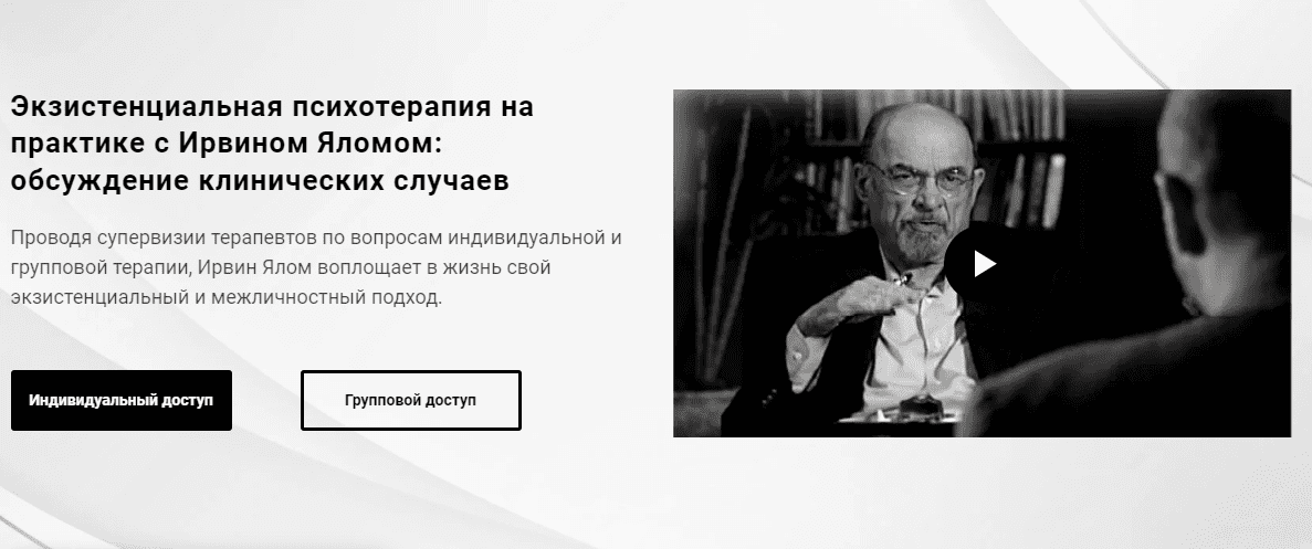 Проводя супервизии терапевтов по вопросам индивидуальной и групповой терапии, Ирвин Ялом воплощает в жизнь свой экзистенциальный и межличностный подход.newpsy.org