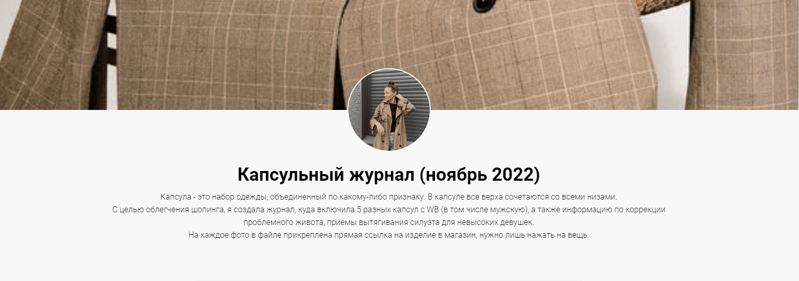 С целью облегчения шопинга, я создала журнал, куда включила 5 разных капсул с WB (в том числе мужскую), а также информацию по коррекции проблемного живота, приемы вытягивания силуэта для невысоких девушек.