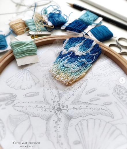 Мы будем учиться не воду вышивать, а вышивать на фатине и подбирать приёмы под идею НА ПРИМЕРЕ МОРСКОЙ ТЕМЫ.