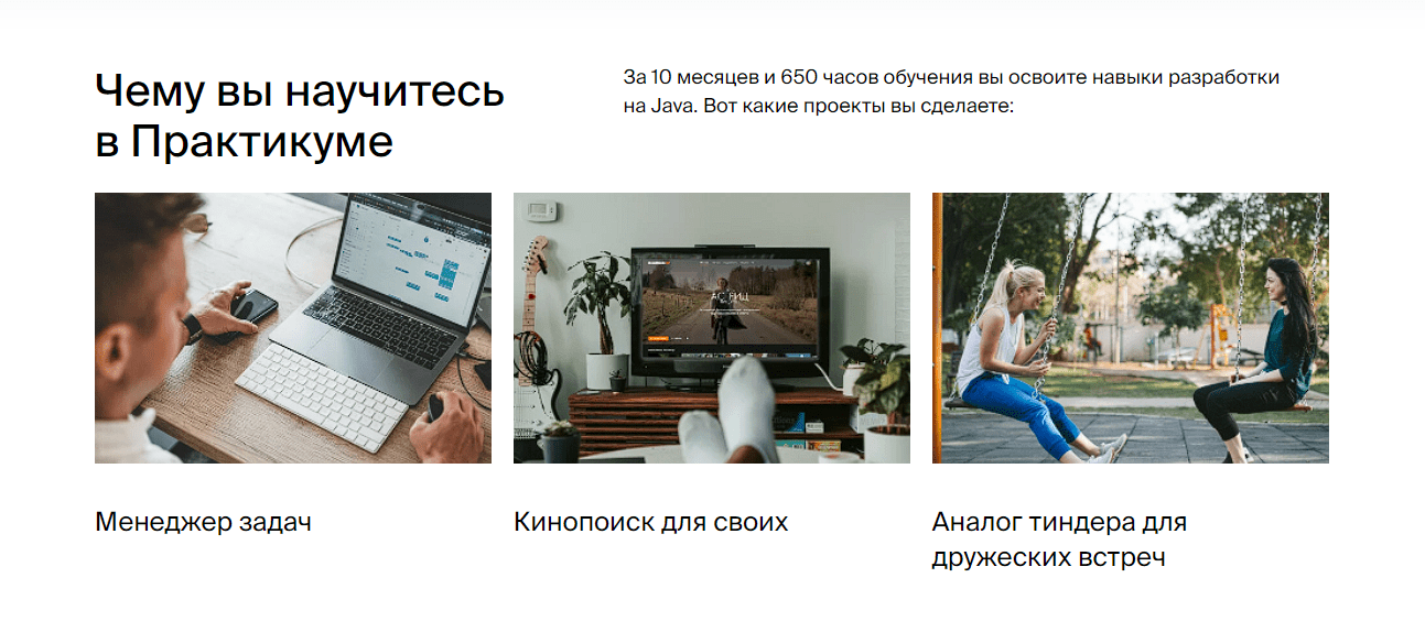 Чтобы закрепить свои знания и умения вы сделаете финальный проект — аналог Тиндера для путешествий, походов в кино и другого досуга. Разработка дипломного проекта будет построена так же, как работа реальных программистов: ваш наставник будет тимлидом, а часть сокурсников — командой. Кроме работы над проектом, вы будете готовиться к собеседованиям: проходить дополнительные темы, решать алгоритмические задачи и участвовать в тестовых собеседованиях.