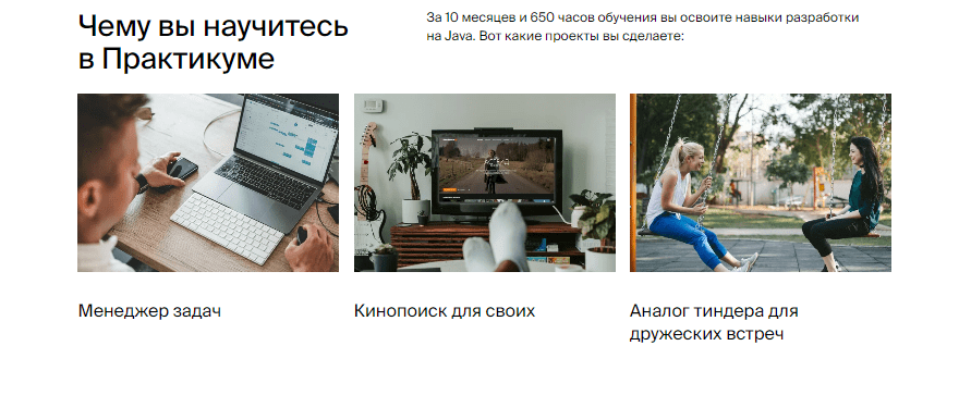 Чтобы закрепить свои знания и умения вы сделаете финальный проект — аналог Тиндера для путешествий, походов в кино и другого досуга. Разработка дипломного проекта будет построена так же, как работа реальных программистов: ваш наставник будет тимлидом, а часть сокурсников — командой. Кроме работы над проектом, вы будете готовиться к собеседованиям: проходить дополнительные темы, решать алгоритмические задачи и участвовать в тестовых собеседованиях.