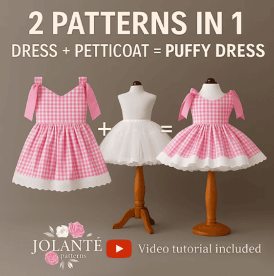 Название: 2 выкройки в 1 – Детское пышное клетчатое платье + нижняя юбка (2026)