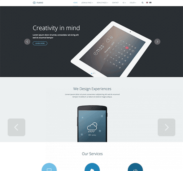 JA Nuevo - современный шаблон Joomla последней версии от производителей веб-студии JoomlArt. Дизайн JA Nuevo сделан в стиле минимализма и содержит три цветовые схемы: синий, фиолетовый и зеленый. Встроенный в шаблон инструмент ThemeMagic позволяет придать уникальность благодаря возможностям легкого изменения CSS стилей. Как и все шаблоны веб-студии JoomlArt, JA Nuevo создан на платформе T3 Framework, который обеспечивает гибкую работу всей системы. Поддержка мобильной электроники и планшетов. В архиве с JA Nuevo, есть компонент K2, который способен расширить возможности при размещении материалов на сайте Joiomla. JA Nuevo шаблон можно использовать для создания портфолио с наглядным размещением товаров и услуг компании.