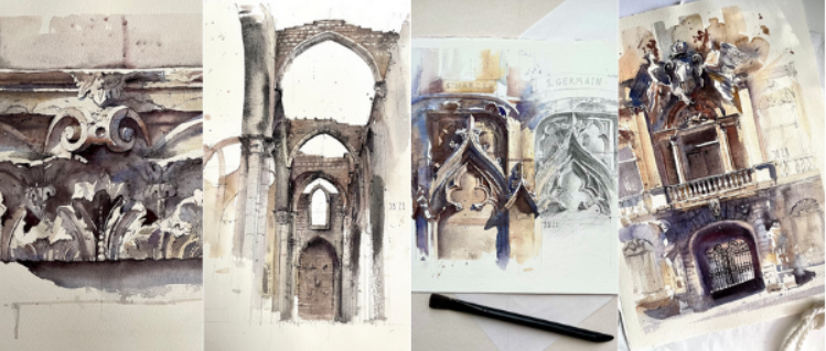 Архитектурная живопись опирается на 2 навыка: академический рисунок и акварельная техника.