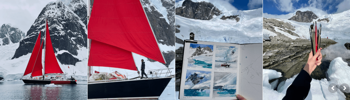В главных ролях: Антарктида, горы, море, парусная яхта с алыми парусами и захватывающие отражения