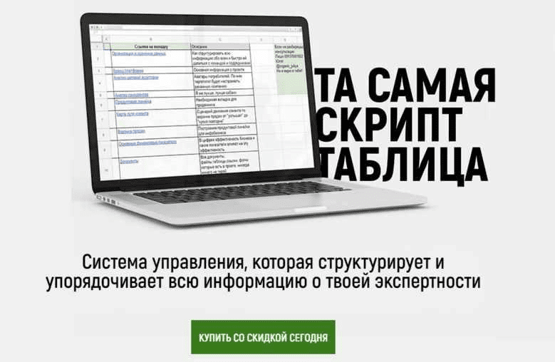 ВНУТРИ скрипт - таблицы с универсальными шаблонами для упаковки любой экпертности и продажи любых услуг, которые вы легко адаптируете под себя.