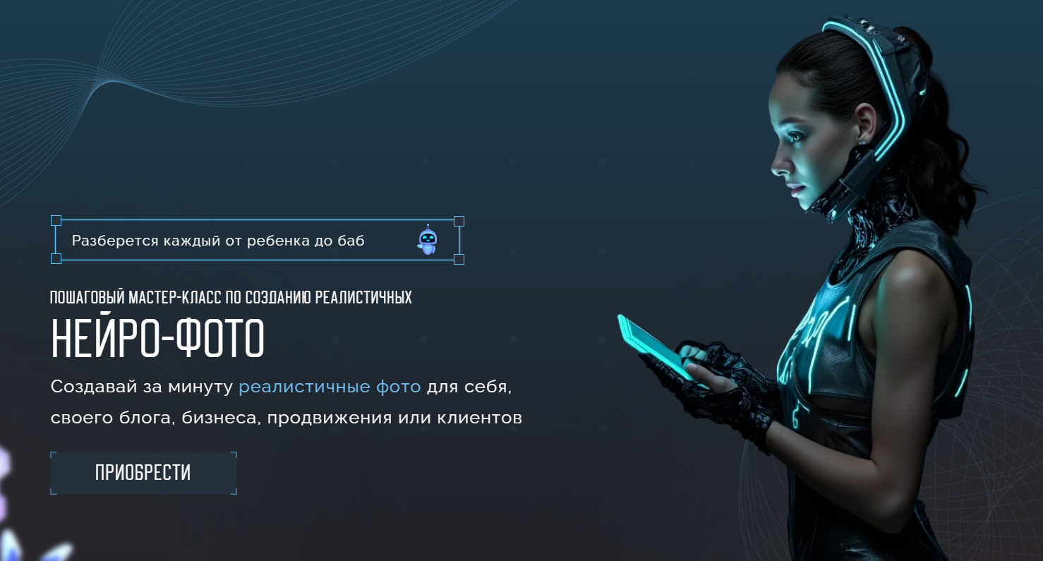 Буквально за 10 минут вы научитесь самостоятельно создавать любые фотографии, используя силу искусственного интеллекта для себя, своего блога, бизнеса, продвижения или клиентов.