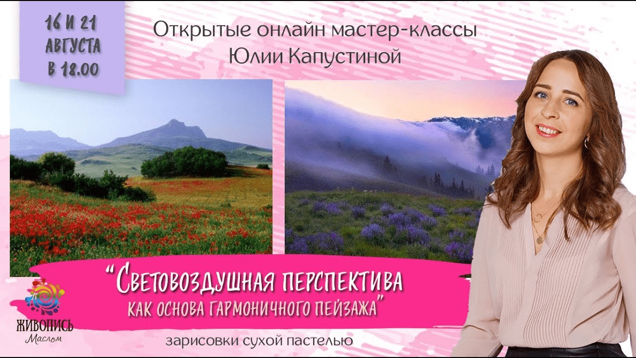 На первом открытом вебинаре Юлия Капустина написала пейзаж "Маковое поле", поделилась правилами передачи световоздушной перспективы и навыками работы сухой пастелью.