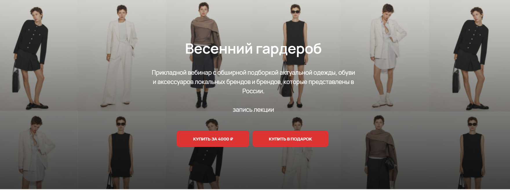 Весенний гардероб — прикладной вебинар с обширной подборкой актуальной одежды, обуви и аксессуаров локальных брендов и брендов, которые представлены в России.