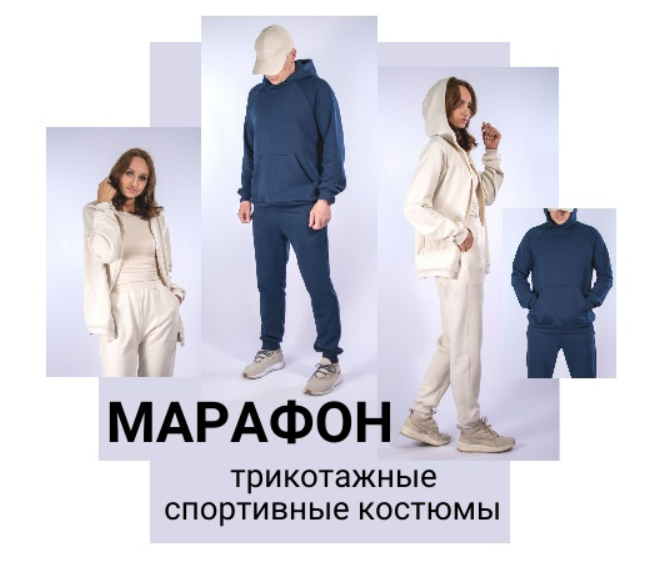 В течении недели сошьём четыре изделия - это два варианта толстовки - с накладным карманом и на молнии, капюшон со стойкой, и два варианта брюк - мужские и женские.