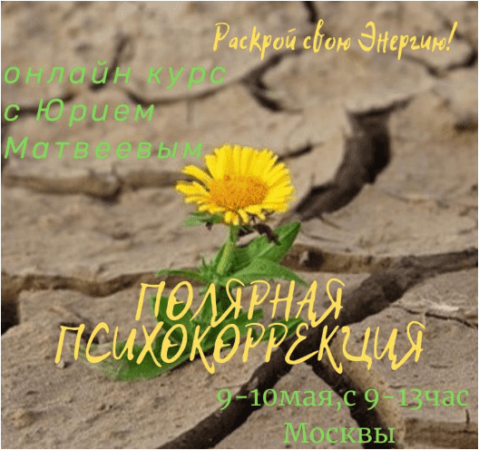 У Вас есть Великолепная возможность стать участниками обучающего класса ЮРИЯ МАТВЕЕВА «ПОЛЯРНАЯ ПСИХОКОРРЕКЦИЯ», на котором Вы получите Ключи Доступа к своему Главному Безграничному Ресурсу - Подсознанию!!!