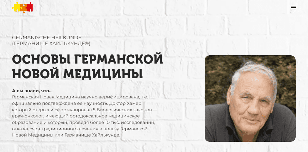 Германская Новая Медицина научно верифицирована, т.е. официально подтверждена ее научность. Доктор Хамер, который открыл и сформулировал 5 Биологических законов — врач-онколог, имеющий ортодоксальное медицинское образование и который, проведя более 10 тыс. исследований, отказался от традиционного лечения в пользу Германской Новой Медицины или Германише Хайлькунде.