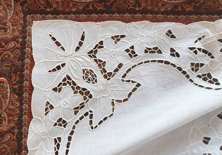 Ришелье украшали занавески, салфетки, наволочки, подзоры, одежду, постельное бельё.