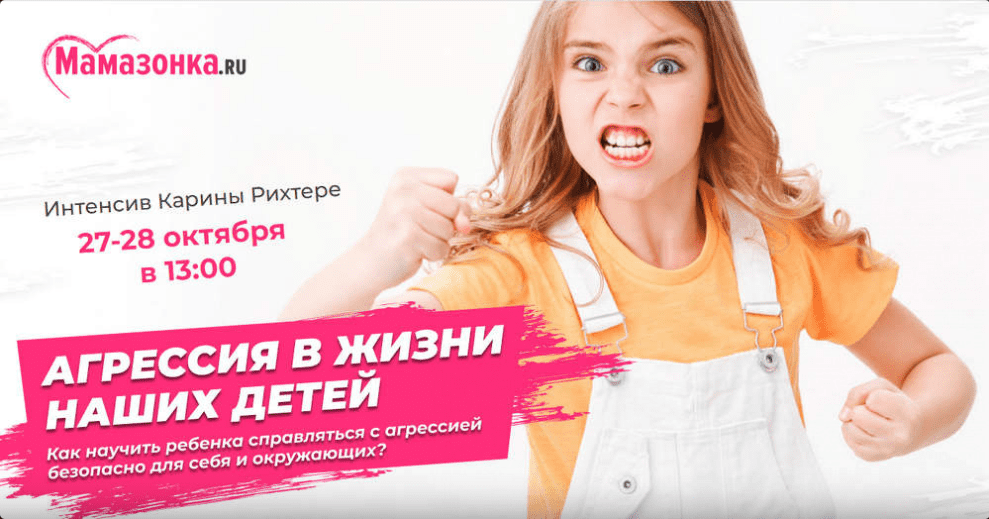 Приходите на интенсив и узнаете причины агрессии и что делать в случаях, когда ваш ребенок агрессивно себя ведет или становится жертвой агрессии других.
