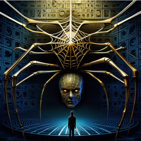 Паук плетёт узор паутины, создавая пространство для себя, доставая нить из самого себя. Паутина способна задерживать и тормозить быстрые объекты.