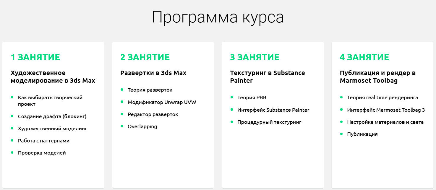 На курсе вы познакомитесь с важной составляющей 3D проектов - творчество! Важно наполнить работу характером, интересной формой и движением. Мы изучим моделирование в 3ds Max с другой стороны, где важен начальный драфт, силуэт, движение по форме, разнообразие деталей. Обязательно научимся делать развертки, чтобы создавать качественные PBR текстуры в программе для текстуринга - Substance Painter. Финалом курса станет визуализация и публикация работы с помощью real time рендера Marmoset Toolbag.