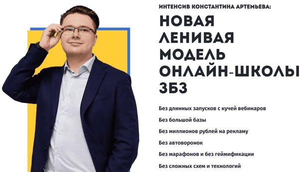 Привет, меня зовут Константин артемьев.эта страничка откроет тебе заветную дверь в новую ленивую модель построения твоей онлайн-школы под кодовым названием " З Б З "