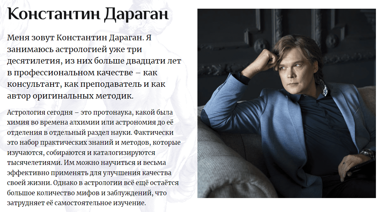 Семинар предназначен для слушателей, знакомых с астрологическим символизмом, которое хотят в сжатые сроки заполнить пробелы в образовании по конкретным темам в интерпретации натальной карты и наработать практические навыки. Курс предполагает развитие творческих способностей слушателей, необходимых для самостоятельной работы.