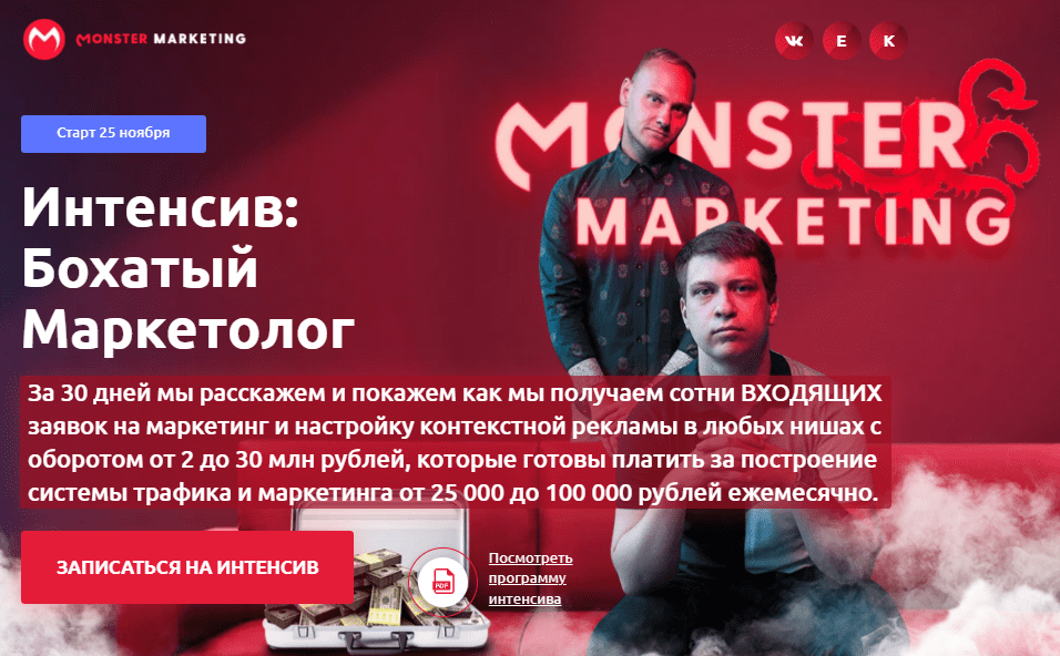 За 30 дней мы расскажем и покажем как мы получаем сотни ВХОДЯЩИХ заявок на маркетинг и настройку контекстной рекламы в любых нишах с оборотом от 2 до 30 млн рублей, которые готовы платить за построение системы трафика и маркетинга от 25 000 до 100 000 рублей ежемесячно.