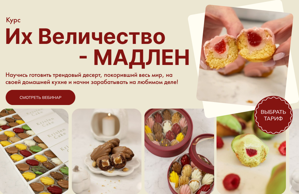 Вы когда-нибудь мечтали научиться готовить настоящее французское печенье «Мадлен»? Теперь у вас есть такая возможность! Кристина Лова, известный кулинарный эксперт, предлагает вам пройти эксклюзивный курс «Их Величество Мадлен».