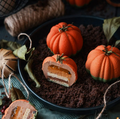 В моей десертной линейке есть и простые, и сложные торты. Но этот — особенный. «Mrs Pumpkin» я создавала как самый многогранный и интересный десерт, и он получился невероятно стильным и ароматным. Внутри вас ждёт сразу шесть разных текстур, которые можно использовать и в других ваших десертах.