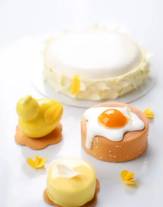 2. Пирожное "Циплёнок" эрл грей, персик, вареная сгущенка.