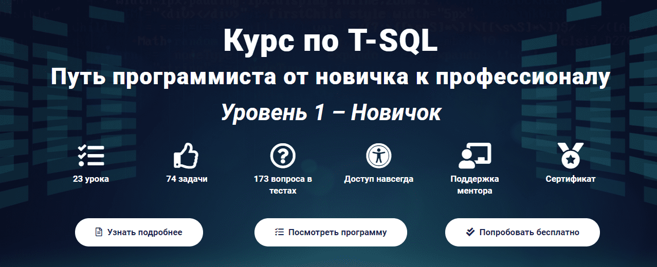1. Курс рассчитан на новичков, кто хочет изучить T-SQL с нуля
