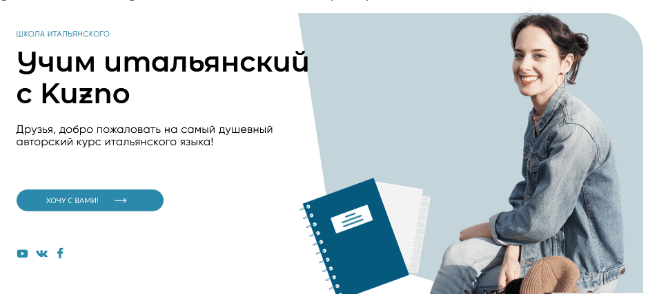 - Никаких древних примеров из старых учебников, только современный язык и живая итальянская речь носителей языка в каждом уроке. С нами будет весело и куцно