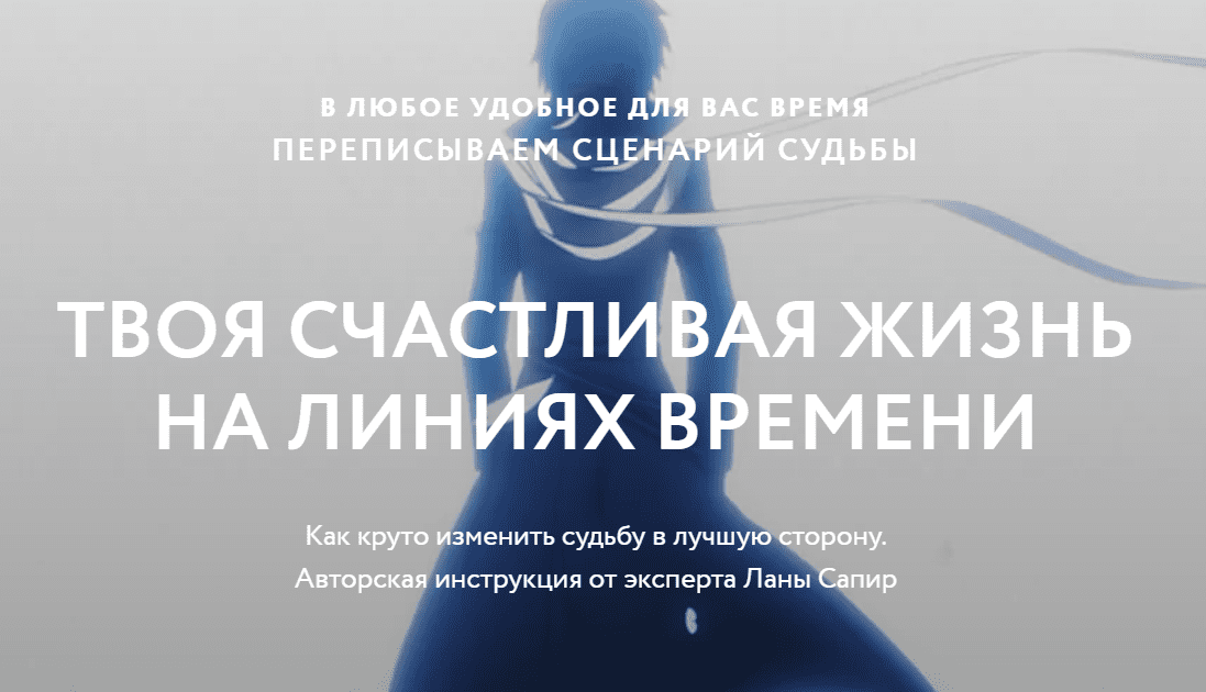 Воспользуйся возможностями мощнейшей техники по работе с прошлым, настоящим и будущим. Под руководством опытного инструктора ты пройдёшь по линиям времени, сотрёшь все причины прошлых неудач, легко сформируешь счастливые события новой реальности. И в жизни наступят благоприятные перемены.