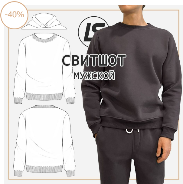 В чем преимущества этой модели? Обратите внимание на втачной рукав: линия притачивания рукава идёт четко по плечу, оно не спущенное. Силуэт умеренного объёма, расширенный к верху и зауженный к низу, что добавляет спортивности в стиле. Шить можно в двух вариантах: с простой горловиной или с капюшоном. Оба варианта есть в лекале. Модель сама по себе является базовой в мужском гардеробе. По этому лекалу получаются отличные свитшоты и другие изделия.
