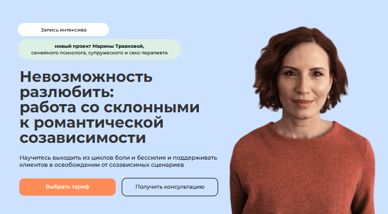 Интенсив Марины Травковой — это возможность осознать причины выбора «не тех» партнеров у себя или клиента, научиться вовремя распознавать деструктивные сценарии и начать путь к здоровым отношениям