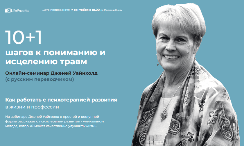 На вебинаре Дженей Уайнхолд в простой и доступной форме расскажет о психотерапии развития - уникальном методе, который может качественно улучшить жизнь.