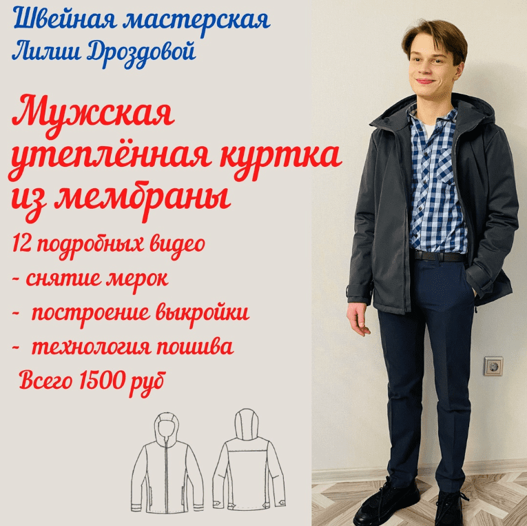 [Лилия Дроздова] [lili_drozdova_sewing] [Шитье] Видеокурс "Мужская утеплённая куртка из мембраны" (2022)