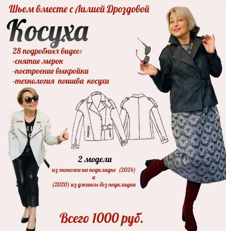 [Лилия Дроздова] [Шитье] Косуха. 2 модели: из экокожи на подкладке и из джинсы без подкладки (2024)
