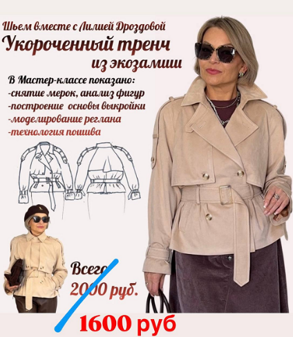 [Лилия Дроздова] Укороченный тренч из экозамши (2025)