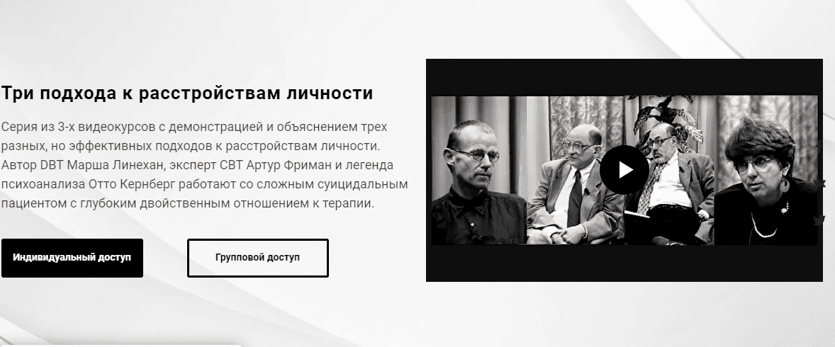 Серия из 3-х видеокурсов с демонстрацией и объяснением трех разных, но эффективных подходов к расстройствам личности.