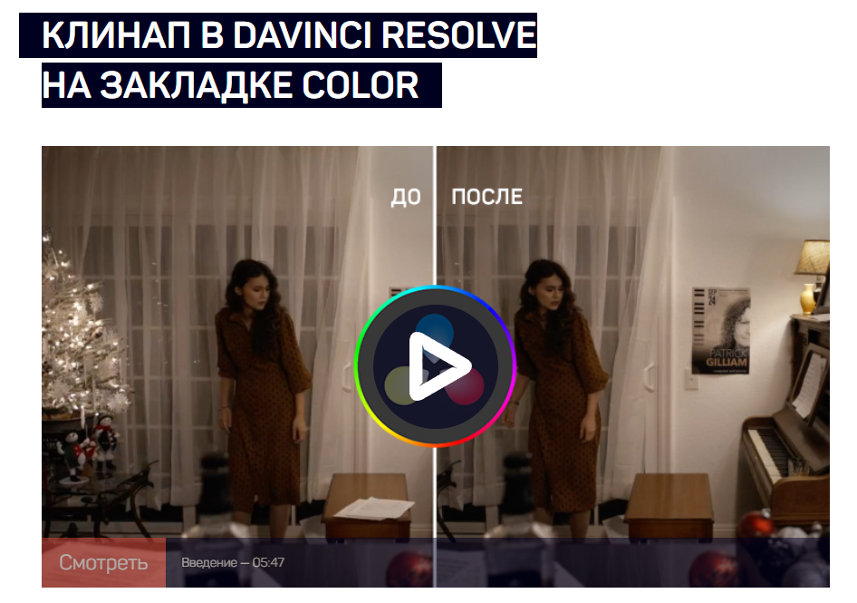 Получи скидку на мастер-класс «Клинап в DaVinci Resolve на закладке Color»